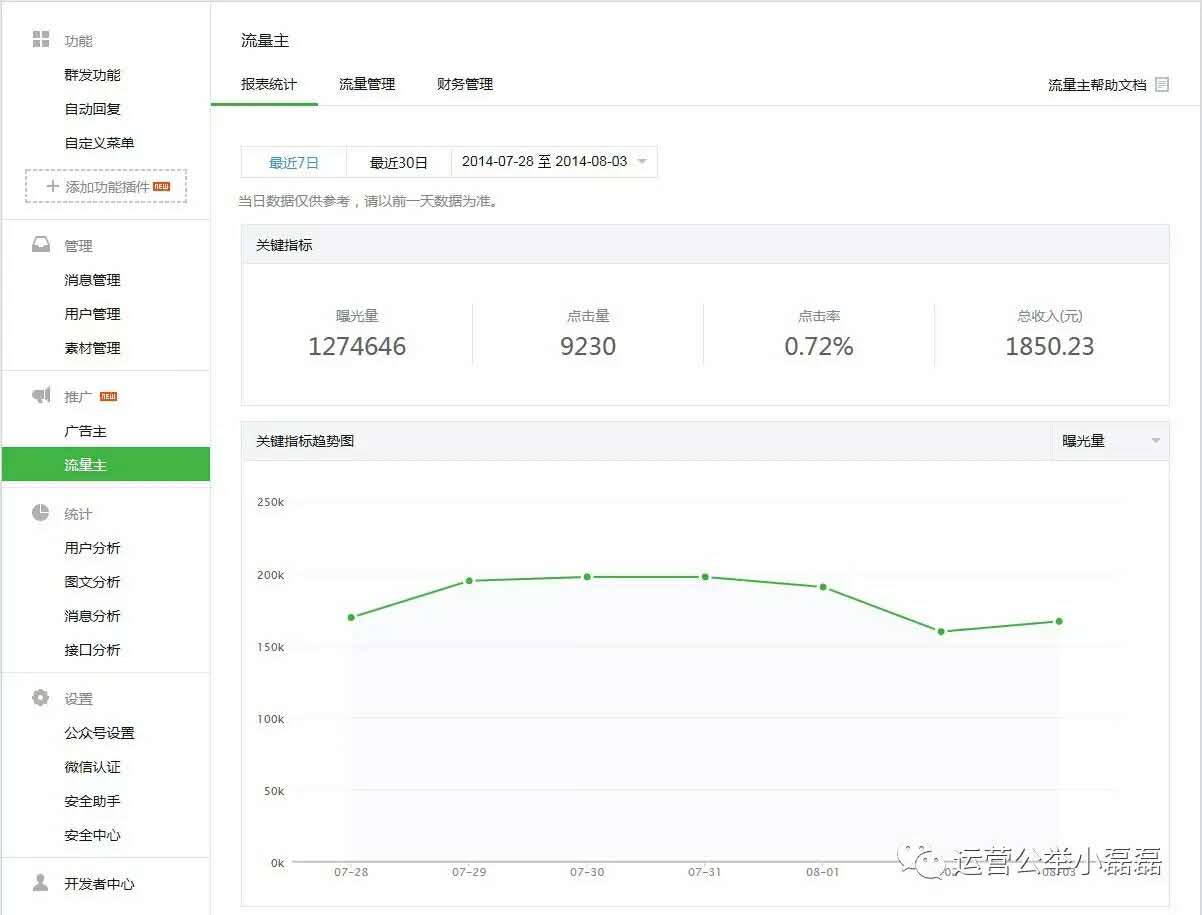 粉絲超過(guò)5000個(gè),就能申請(qǐng)開(kāi)通流量主(具體規(guī)則,可以到微信后臺(tái)了解)