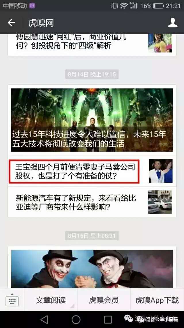 在小編看來(lái),原生廣告甚至可以是公眾號(hào)某文章的100%內(nèi)容,例如“虎嗅網(wǎng)”以報(bào)道商業(yè)資訊而出名,其公眾號(hào)閱讀量少則三四萬(wàn),多點(diǎn)七八萬(wàn),有科技內(nèi)容、創(chuàng)業(yè)內(nèi)容、互聯(lián)網(wǎng)熱點(diǎn)、連王寶強(qiáng)的八卦也追……