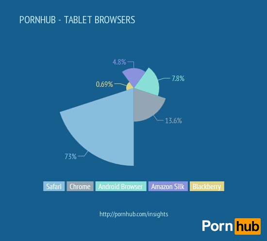 就連色情影片分享網(wǎng)站的網(wǎng)頁(yè)數(shù)據(jù),也顯示移動(dòng)設(shè)備瀏覽比例越來(lái)越大。Pornhub 今年 5 月公布的數(shù)據(jù),顯示每天 3,800 萬(wàn)的瀏覽人數(shù)中,有一半是用手機(jī)、平板等移動(dòng)設(shè)備觀看。