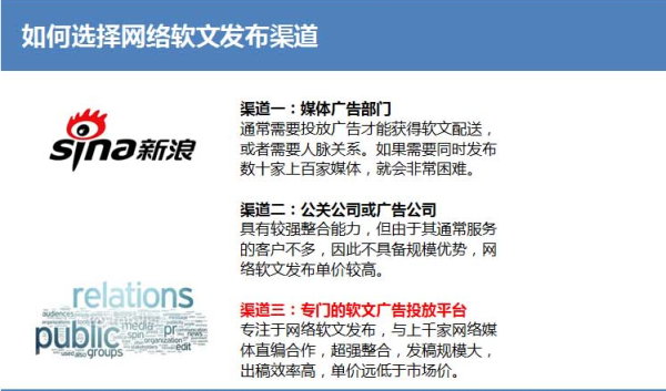 選擇軟文投放平臺對普通個體(中小企業(yè))是最經(jīng)濟的方式,諸如BAT等少數(shù)財大氣粗的玩家才具備通過公關(guān)公司大批量買斷KOL以及媒體進行造勢的實力。