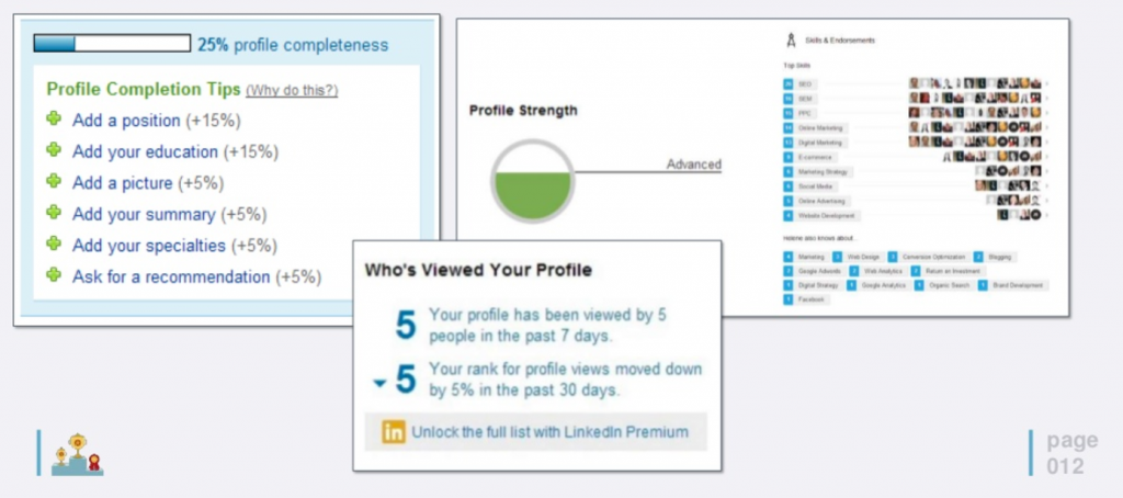 LinkedIn 就是一個典型的范例,他們讓用戶盡可能系統地完善他們的個人資料,通過進度條和獎勵機制來“勾引”用戶逐步完善他們的個人信息,在用戶加入LinkedIn 的早期階段,一部分用戶會沉迷構建一份好的個人信息而不可自拔,并且開始加好友。幾個月后,用戶會逐步開始使用群組功能,申請工作,和以往的同事或者可能會有關系的新同事產生聯系,完善自己的關系網。