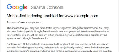 怎樣知道自己的網站已經轉為mobile-first index?Google說會在Google Search Console中通知站長,消息大致是這個樣子: