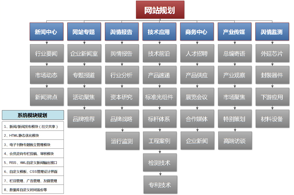 主站欄目設(shè)計(jì)主要以首頁、新聞、產(chǎn)研、技術(shù)、電商、輿情、展覽、雜志、標(biāo)桿體系、標(biāo)準(zhǔn)光組件幾大功能定位;主站次級(jí)功能導(dǎo)航欄目分為LED專營店、戰(zhàn)略研究院、品牌研究院、產(chǎn)業(yè)數(shù)據(jù)庫、樂德技術(shù)轉(zhuǎn)移、粵港臺(tái)論壇六大快捷鏈接。首頁版塊設(shè)置整站內(nèi)容搜索功能,方便用戶瀏覽查詢。