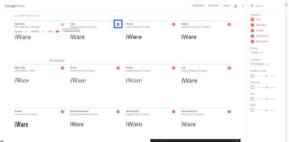 圖5. 點選 + 號按鈕,點選完會更第一個字型依樣變成 - 號按鈕,右下角會出現(xiàn)選擇的字型