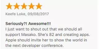我想大聲呼吁大家支持Masako,她82歲了還在編寫(xiě)APP。蘋(píng)果應(yīng)該把她請(qǐng)到下一屆開(kāi)發(fā)者大會(huì)上。