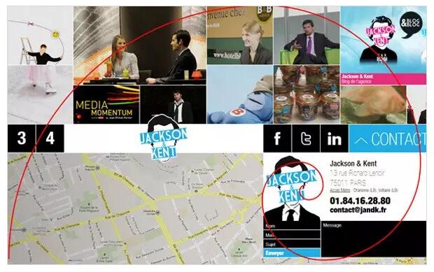 這個網(wǎng)站有兩三個頁面有用到黃金比例。主頁是關鍵信息的一個概念性詮述。然而,當您訪問工作室頁面時,會發(fā)現(xiàn)它融合了一點傳統(tǒng)的Web布局與黃金分割矩形,如以下頁面: