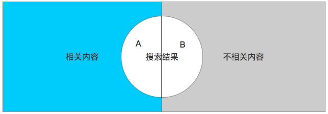準確率:搜索結果中相關內容的比例,即圖中A的部分