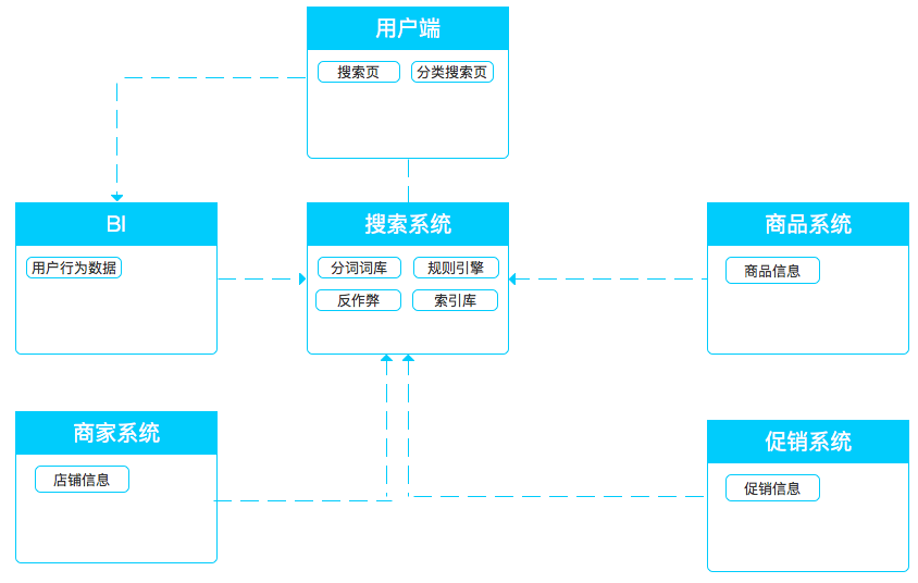 搜索系統主要為用戶端提供搜索結果的輸出,輸入方面來自于相關的下游系統。