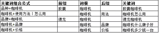當(dāng)我們分析咖啡行業(yè)時(shí),會發(fā)現(xiàn)用戶有這些方面的需求:購買物料/設(shè)備、了解使用方法/制作技巧。關(guān)鍵詞的共性需求就有,咖啡豆價(jià)格/咖啡機(jī)價(jià)格等,XX咖啡制作方法。
