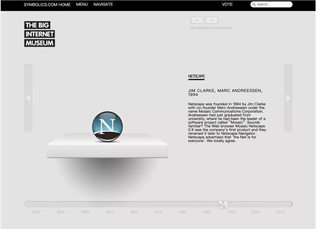 如今,Napkin 已經(jīng)將 Symbolics 打造成一個專門記載互聯(lián)網(wǎng)發(fā)展史的站點,還使用了極簡的復古風格設(shè)計,當你滑動頁面下方的時間滑塊,就能看到各個時間節(jié)點所發(fā)生的大事件。