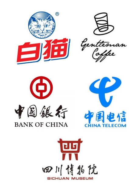 而中國銀行、中國電信和四川博物院則是通過提取名稱中的一個字來進行圖形設計。