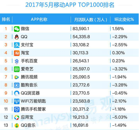 首先看一張數據,這個數據來自獵豹研究院,是2017年5月份所有移動APP的數據排行。拿這個數據就是想告訴大家,幾乎所有的頭部產品的運營都有內容加入。比如愛奇藝、酷狗音樂、今日頭條就是內容型產品。比如微信、QQ,是內容加上社交,應用寶是應用下載+內容,支付寶是支付工具+內容,支付寶的天天有料也逐漸往信息流和內容化上轉變。所以內容+已成為各大頭部應用抓住用戶的一種戰略。