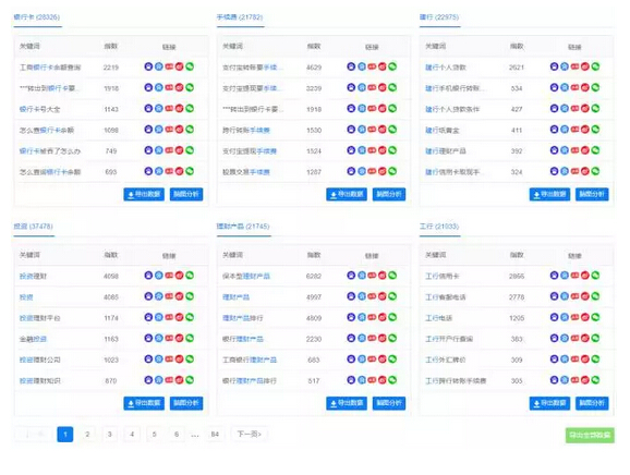 理財行業(yè) 的核心詞之下長尾詞列表部分如下: