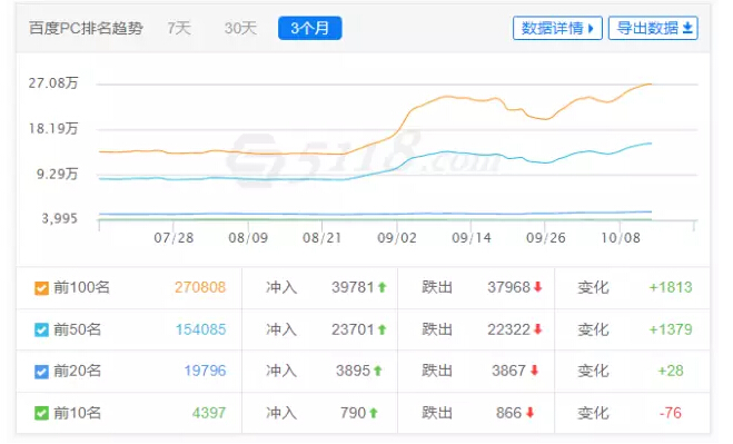 域名權(quán)重信息代表著是否排名前50的域名中是不是都是有權(quán)重還比較低的域名,這樣你才有機會擠進去。