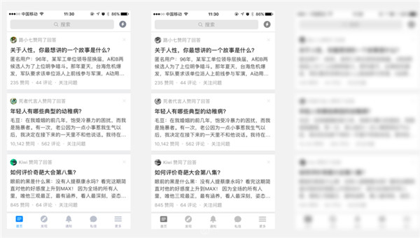 如上圖所示是一個知乎頁面,我們把它去色并且高斯模糊去分析它的視覺焦點,大家會發(fā)現(xiàn)其實視覺焦點是加粗加大的title字體和上面的小頭像去構成的: