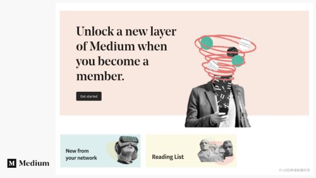 圖14. 大家熟悉的Medium平臺運用柔和的粉彩及拼貼的虛實交錯,呈現低調溫吞的獨特風格