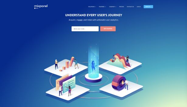圖16. Mixpanel是產品分析的工具,大量運用漸層色及isometric插畫(2017.08)