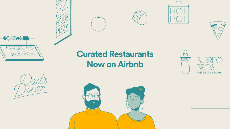 2017年九月Airbnb與Resy合作,推出餐廳預約功能Curated Restaurant,Jonas Mosesson運用生動活潑的插畫說明使用情境。