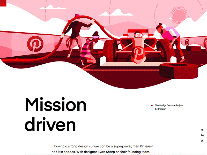其中翹楚就是Invision,在蘇格蘭插畫家Jack Daly的帶領下,設計出一系列獨特的風格。從2017年八月推出的設計指南DesignBetter.Co,到今年三月發表的設計團隊研究專案The Design Genome Project,一氣呵成的視覺饗宴。