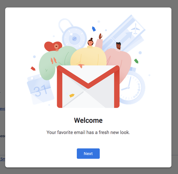 圖9. Gmail 新改版的launch視窗運用插畫讓使用者感到親切(2018.04)