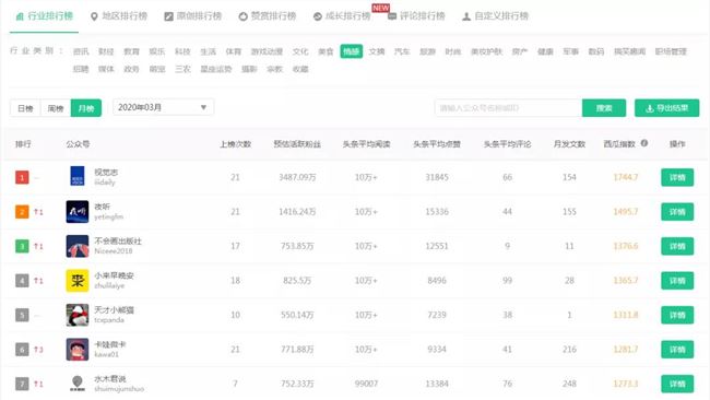 西瓜數(shù)據(jù)各類公眾號(hào)榜單排名