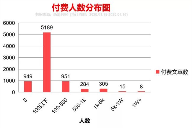 如今微信付費(fèi)閱讀灰度測試已經(jīng)過去三個(gè)多月了,根據(jù)微信方面消息,參與灰度測試的訂閱號(hào)中,目前已經(jīng)有超過 2 萬個(gè)公眾號(hào)開通了付費(fèi)功能。除開“好運(yùn)哥”單篇收入 81 萬元的被刪文章,其中高收入的一篇文章達(dá) 70 萬元。據(jù)透露, 2020 年微信將在內(nèi)容付費(fèi)上有更多動(dòng)作。那么微信付費(fèi)閱讀到底能不能賺錢,西瓜數(shù)據(jù)監(jiān)測樣本庫內(nèi)從 1 月 15 日灰度測試開始到 4 月 15 日的所有內(nèi)容,發(fā)現(xiàn)共有 2369 個(gè)賬號(hào)發(fā)布了 7701 篇付費(fèi)閱讀內(nèi)容。 下面我們將從數(shù)據(jù)層面分析付費(fèi)閱讀功能的使用情況,希望能給你一些參考。