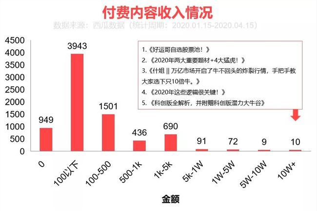 從統(tǒng)計(jì)周期內(nèi)的數(shù)據(jù)來看,平均單篇付費(fèi)內(nèi)容的收入為 1092 元(灰度測試期間不考慮IOS端用戶APP的30%支付抽成),其中有 10 篇付費(fèi)內(nèi)容的收入在 10 萬以上,這些高收入的付費(fèi)內(nèi)容中,財(cái)經(jīng)行業(yè)股評(píng)內(nèi)容占多數(shù)。就好運(yùn)哥文章被刪一事,西瓜數(shù)據(jù)建議大家不要用付費(fèi)閱讀功能來推薦股票,否則將涉嫌違規(guī)。一直以來,微信方面對打擊“薦股”毫不手軟,官方表示將配合微信安全中心的打擊行動(dòng),針對相關(guān)詐騙、騷擾等違法違規(guī)的信息和公眾號(hào)進(jìn)行處理,進(jìn)一步規(guī)范微信公眾平臺(tái)的信息發(fā)布行為,保障微信用戶的信息安全及合法權(quán)益。