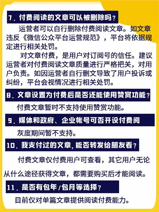 此外,也有一些公眾號(hào)運(yùn)營者獨(dú)辟蹊徑,將付費(fèi)閱讀作為一種新的經(jīng)營方法。例如,用付費(fèi)功能增加留言的門檻,禁止原創(chuàng)文章的轉(zhuǎn)載,或在社群營銷中,付費(fèi)獲取進(jìn)群二維碼,也有公眾號(hào)將付費(fèi)功能用于收紅包。這里要額外注意一點(diǎn),微信官方表示付費(fèi)功能不可用作募捐等用途。