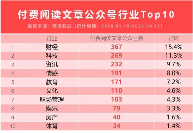發(fā)文趨勢/付費(fèi)內(nèi)容行業(yè)TOP10