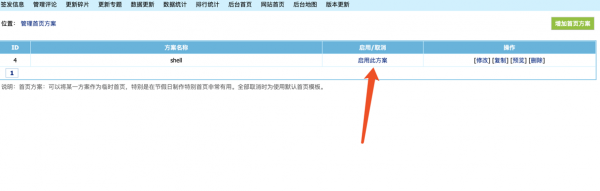 寫到模板內容頁面里,左鍵點擊提交,再點擊啟用此方案,就在會e/admin/template/文件夾下生成一個shell.php文件。