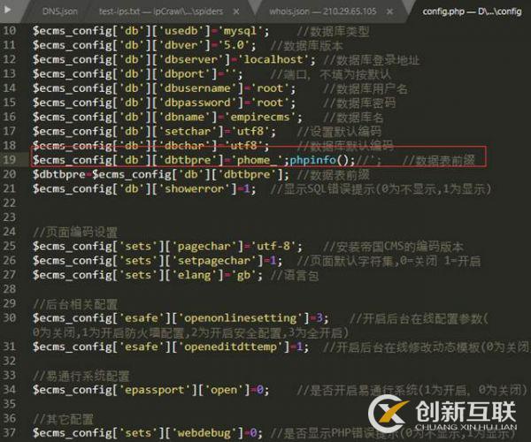 首先我們檢測到的是帝國安裝代碼功能上存在可以插入惡意代碼漏洞,在install安裝目錄下的index.php文件中,可以查到表的前綴,也就是獲取前端提交過來的參數,然后繼續往下看,data目錄下的fun.php代碼里的參數并沒有做任何的安全效驗,導致可以直接插入惡意代碼寫入到配置文件config.php中去。漏洞詳情如下圖:
