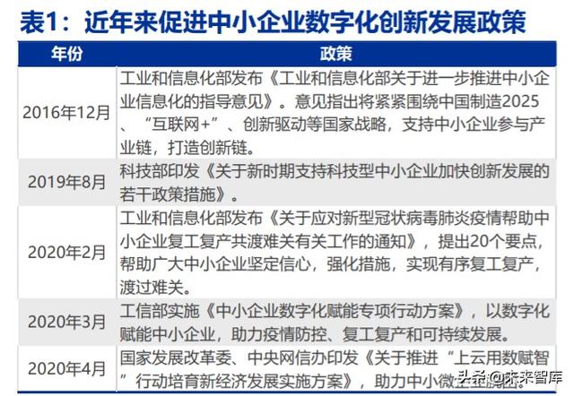 ? 中小企業(yè)迎政策利好,帶動(dòng)產(chǎn)業(yè)帶數(shù)字化創(chuàng)新發(fā)展。近年來(lái)國(guó)務(wù)院出臺(tái)多 項(xiàng)政策推動(dòng)中小企業(yè)數(shù)字化創(chuàng)新發(fā)展,以數(shù)字化賦能中小企業(yè),助力中小 微企業(yè)脫困。