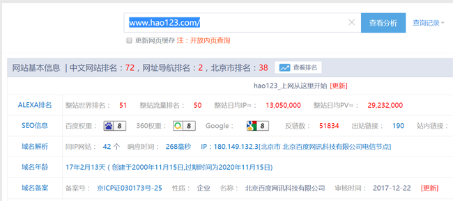 你可以通過愛站網與站長之家來查詢,但這兩個網站查出來的值是不一樣的,一般愛站網的百度權重值偏低,站長之家高一點。