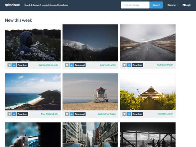 Splashbase是一家集免費,公共領域,高分辨率的照片來自網絡。你可以搜索或瀏覽,和主頁上顯示你的新的一周。