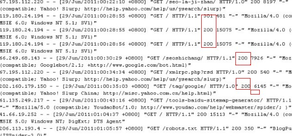 200代表正常,如果網站訪問日志經常出現50X,這個時候就要注意了,500代表服務器遇到錯誤,無法完成請求,501代表服務器不具備完成請求的功能,502代表服務器作為網關或代理,從上游服務器收到無效響應等,凡是以50X結尾的都是我們不想看到的。必要的時候,空間要果斷的更換。