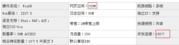 可以計算一下,150M的空間容量以一篇文章3KB的大小計算可以容下51200篇文章,IIS是150,如果你能保證你每20分鐘在線人數是150的話,一天下來也可以有幾萬的流量,月流量20G完全可以承受每天3W甚至更多的IP,而且M容量的空間價格大多數站長都可以接受,這些你們都精心算過沒有,所以空間選擇勿要挑三揀四。