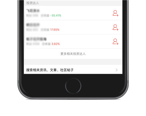 根據場景來分析因為用戶剛到一個平臺是陌生的,對于這里面的投資組合和組合的創建人都不了解,但是他對自己所持有的股票是熟悉的,所以我們把股票放在第一位。用戶搜索并進入自己的股票之后,根據持股組合知道當前什么組合持有這只股票,從組合又可以讓用戶認識達人。所以搜索結果組合放在第二位,達人放在第三位。