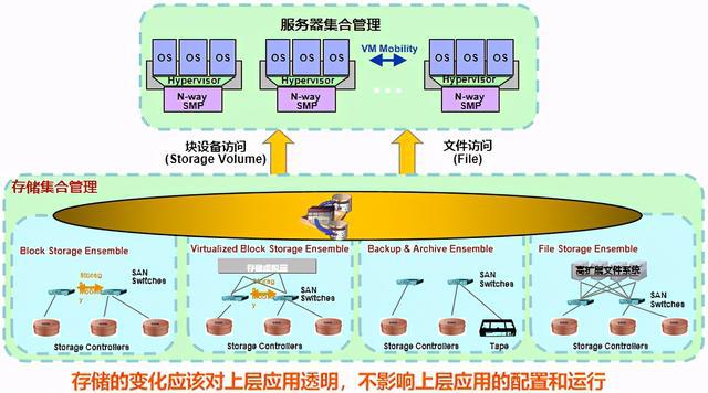 通過對存儲(子)系統或存儲服務的內部功能進行抽象、隱藏或隔離,使存儲或數據的管理與應用、服務器、網絡資源的管理分離,從而實現應用和網絡的獨立管理。對存儲服務和設備進行虛擬化,能夠在對下一層存儲資源進行擴展時進行資源合并、降低實現的復雜度。