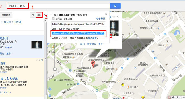 用框架引入谷歌地址是最簡單的方法,不是專業開發人員也可以操作。登陸ditu.google.cn地圖,輸入地址信息,如:"成都東方明珠",把地圖移動到合適的視角,點擊分享鏈接后,有兩個信息。第一個是一個網址,用于在瀏覽器中打開的;第二個是一個框架的代碼,網站中通常使用這個代碼。把代碼復制到網站中去就可以了,里面可以自己設定度度,高度,語言等信息。