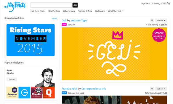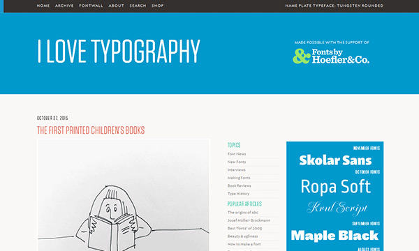 雖然有許多網(wǎng)站提供一個大量的字體下載,typography.com是一個安靜的網(wǎng)站。如果你要找一些有品味的字體,這里是不錯的去處。這些字體有著優(yōu)雅的風(fēng)格,吸引了很多人,都是可以用于Web打印。