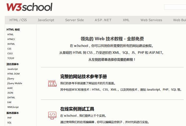 網(wǎng)站建設(shè)教程。從基礎(chǔ)的 HTML 到 CSS,乃至進(jìn)階的XML、SQL、JS、PHP 和 ASP.NET。都適合新手學(xué)習(xí)。