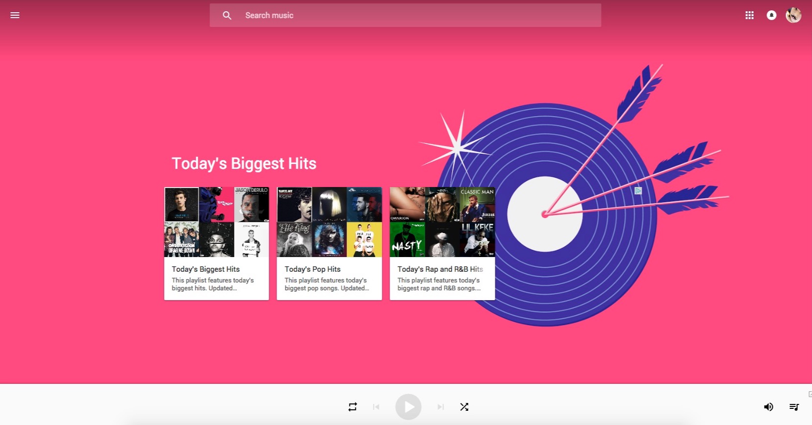 如圖所示:使用設計師網站和谷歌音樂做一個對比,寬屏下的視覺效果和作品hover時的文字按鈕間距大小差異, 谷歌音樂內容和純色底色,頭部底部的距離差異