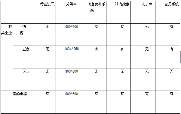 上述為XXXX電器行業網站和其它一些大電器網站技術參數情況,從中可以看出,現有的XXXX電器行業網站網站還需要更好的行使其職能。一