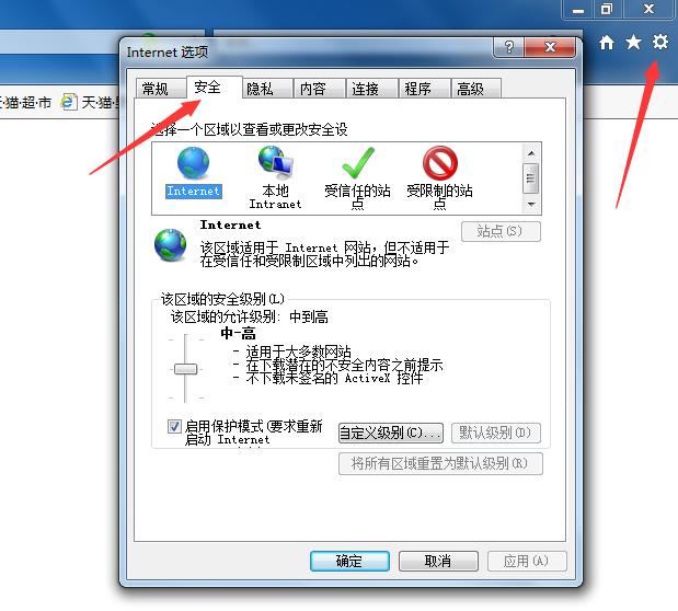 如果用IE瀏覽器直接打開不行,可以在IE瀏覽器中打開Internet選項(xiàng),點(diǎn)擊安全,把安全級(jí)別盡量調(diào)高,然后再用IE瀏覽器重新打開目標(biāo)網(wǎng)頁。這時(shí),會(huì)發(fā)現(xiàn)瀏覽器下方提示IE已限制此網(wǎng)頁運(yùn)行腳本或ActiveX控件。腳本已被自動(dòng)阻止,直接右擊復(fù)制目標(biāo)文件就行了。