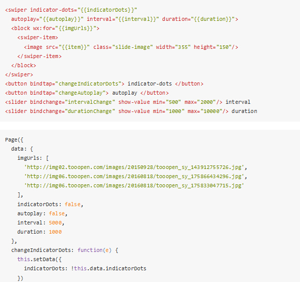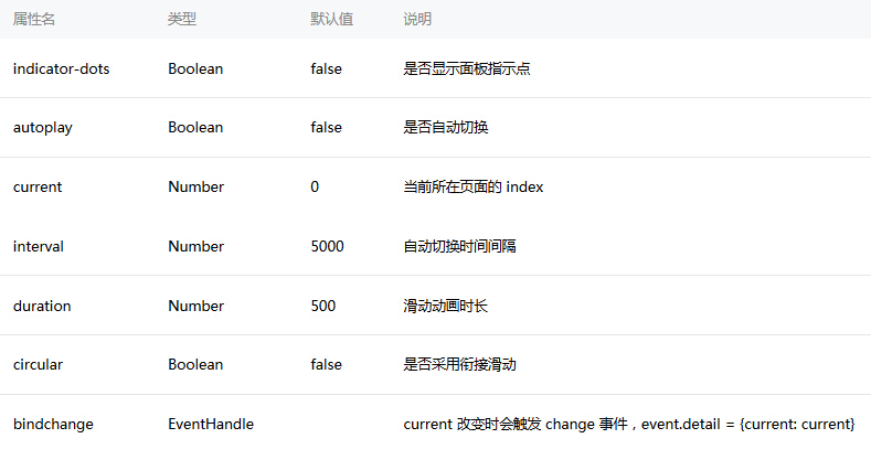 注意:其中只可放置<swiper-item/>組件,其他節點會被自動刪除。