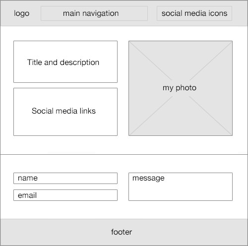 一旦該頁面的內容分為優先級,安排他們在頁面上會容易得多。對頁面頂部放置更重要的元素,并使用白色空間來創建分組。我把桌面的方法,因為我想專注于細節的大屏幕上顯示我的工作。當我們來到以后寫CSS,我們將移動第一種方法,這將簡化代碼(我們將在不久)。我通常用鋼筆和紙繪制我的線框,但您可以使用Balsamiq甚至是Photoshop或Illustrator 工具如。下面是我的聯系方式線框。它并不需要看起來很漂亮-它只是一個工作計劃的一個網頁。