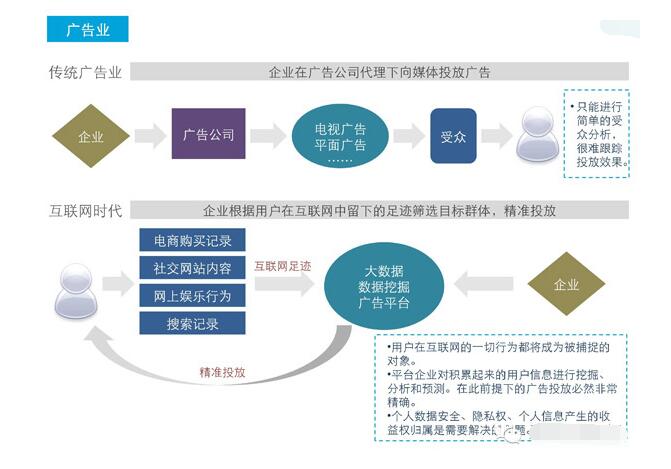 2、未來廣告業(yè)將依托互聯(lián)網(wǎng)大數(shù)據(jù)進行再建立。在未來,在你酒后駕車被罰后,也許你老婆的手機里面會出現(xiàn)是否需要為你購買保險的短信廣告。