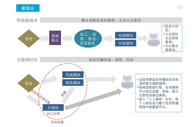 傳統(tǒng)新聞業(yè)被寡頭壟斷,在這樣一種壟斷之下,實際上是在壟斷真相。自媒體,以及小微媒體可以說是隨著互聯(lián)網(wǎng)發(fā)展進程的必然產(chǎn)物。互聯(lián)網(wǎng)進化大的特 點就是,透明!透明!再透明!福柯說過話語的本質(zhì)就是權(quán)力意志,如果說新聞業(yè)是話語霸權(quán)的主導(dǎo)者,那么自媒體就是對話語霸權(quán)的解構(gòu),使得話語權(quán)力回歸到每 一個有話語權(quán)的言說者身上。