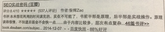 富摘要:使用schema.RDFa.Microdata.Microformats等數(shù)據(jù)標注的頁面,搜索引擎會嘗試從頁面提取結(jié)構(gòu)化數(shù)據(jù),以富摘要形式展現(xiàn)在列表中,如下圖。
