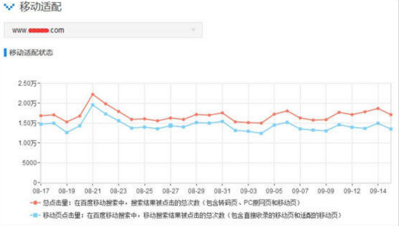 在百度站長(zhǎng)工具中的移動(dòng)適配中,就會(huì)有移動(dòng)適配狀態(tài)查詢(xún)。根據(jù)我們的經(jīng)驗(yàn),一般情況下總點(diǎn)擊量與移動(dòng)頁(yè)面點(diǎn)擊量的結(jié)果數(shù)越接近表示適配做得越好。